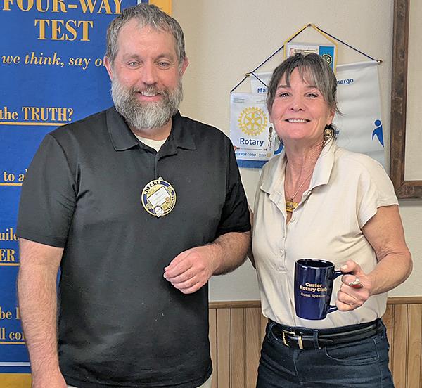 Rotary learns about Pioneer Museum![]() The Custer Rotary Club welcomed Carol Sides, director of the Pioneer Museum in Hot Springs, to its Feb. 2 meeting. Sides told the club about the past, present and future of the museum, and was gifted a Rotary mug by club president Jason Ferguson following her presentation.